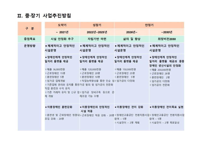 시설운영 중·장기 사업 추진 방침 페이지 정보 작성자 관리자 작성일 2025.03.04 16:54 496 조회 목록 본문 중·장기 사업 추진 방침 SNS 공유 신고 차단 댓글 0 로그인한 회원만 댓글 등록이 가능합니다. 이전글 다음글 목록